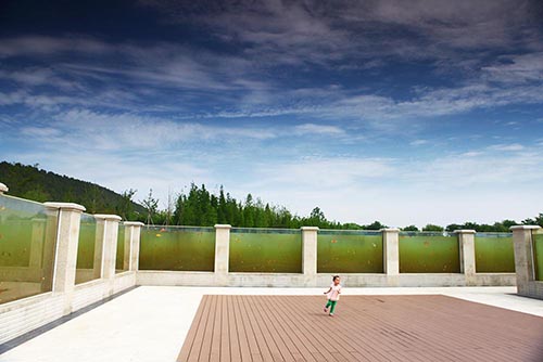珠山景区在建设中,充分融入了"环境优先,人与自然和谐发展"的理念,在总体布局上突出其生态性,对自然山水充分利用,依山而建、临水为景,用环绕整个珠山总占地面积80万平方米的区域,打造出真山真水的园林景观,尽显磅礴大气,使市民能够充分享受绿色的恬静和舒畅,真正做到还绿于民。