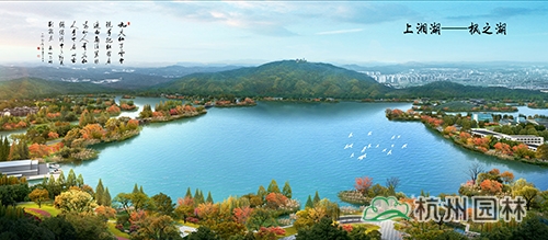 上湘湖形成枫林之湖的景象。