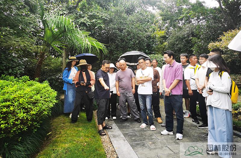 下午,学员们实地观摩了占地近2万平方米的室外景观展示区。现代中式、自然中式、苔藓园、岩石园、日式庭院等风格迥异的主题园,构成了一部立体的园林设计与施工的“教科书”。
